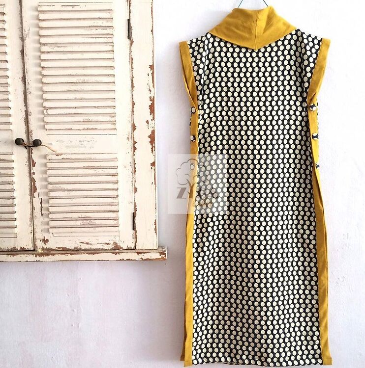 Cutting: Lurus, lengan setali, dengan belahan di bagian kiri dan kanan